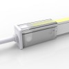 Etape 10 : Une fois positionnée, pincez la cage métallique afin qu'elle se place correctement autour du néon led. Inutile de forcer. Lors de l'insertion dans le socle blanc elle sera parfaitement maintenue. Il faut vraiment que la cage soit positionnée au bord du néon led et à plat (le bas de la cage parfaitement en contact avec le bas du néon).