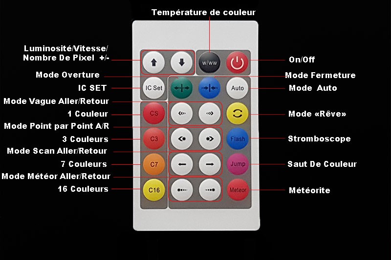 Description de la télécommande LED infrarouge pour contrôleur PIXEL digital