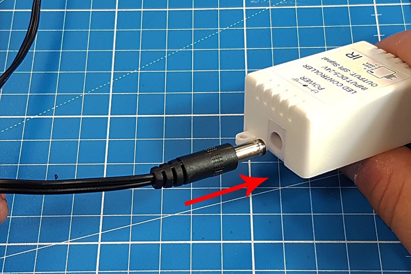 Vous devez donc raccorder électriquement le contrôleur PIXEL. En fonction de votre alimentation LED 5V, soit elle est équipée d'un connecteur jack mâle qu'il faut brancher directement dans le contrôleur. Soit elle est équipée d'un bornier à vis sur lequel vous devez utiliser un connecteur jack mâle de 15cm ou de 1m.