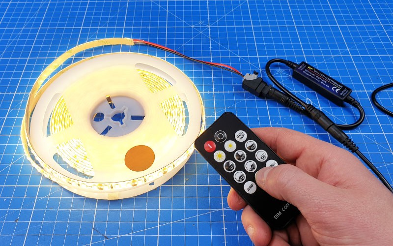 La télécommande vous permet donc de piloter le mini variateur pour ruban LED monocouleur.