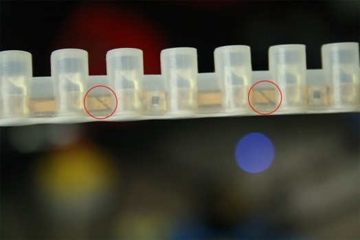 Si l’étain n’adhère pas sur Les bornes cuivrées, c’est qu’il reste un peu de silicone dessus. Dans ce cas, grattez-les à nouveau avec votre cutter.
