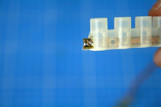 Pour finir, placez la capsule de terminaison en recouvrant totalement la soudure, afin de rendre votre soudure étanche veillez à bien ajouter un peu de silicone dans la capsule avant de la mettre en place. N'hésitez pas à recouvrir la première LED pour un meilleur maintien.