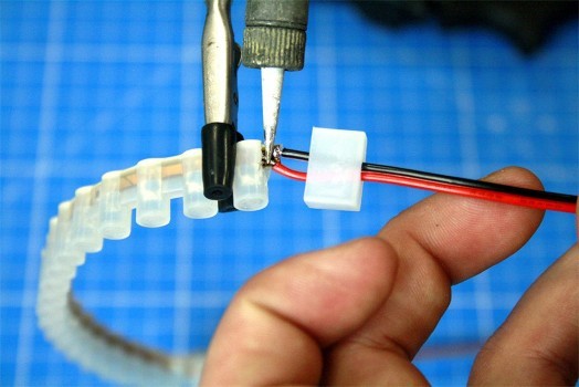 - Souder une longueur de câble électrique. Cela est très utile pour réaliser des angles. En effet, un ruban LED doit être manipulé avec précaution; il ne peut pas se plier dans tous les sens.
