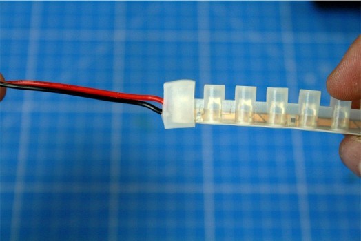 Note: Si vous avez fait un raccord avec du câble électrique et que vous souhaitez par la suite connecter votre ruban LED à une source d'alimentation comme un boitier piles, une mini batterie rechargeable ou même une alimentation secteur sachez qu'il existe des connecteurs pouvant faire le lien entre vos fils et la source d'alimentation.